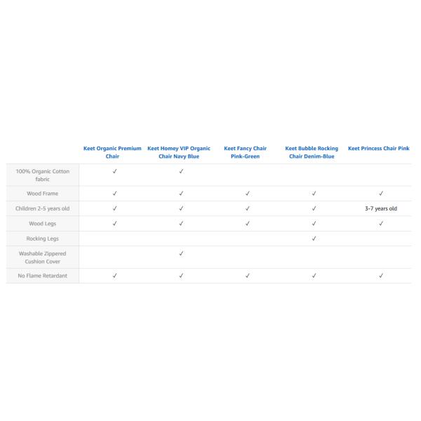 Super sturdy and beautifully designed, with contrasting trim and curving contours on the chair to suit little bottoms and backs